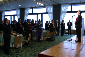 その後、唐津シーサイドホテルの「羽衣の間」において懇親会を行った。田中 慎一郎(当社専務取締役)より主催者挨拶を行い。さらに保利 耕輔様(衆議院議員)、山下 雄平様(参議院議員)、坂井 俊之様(唐津市長)による来賓挨拶の後、青木 茂様(唐津市議会議員)による乾杯の音頭で歓談が始まり、社員一同で楽しい時間を共有した。懇親会の最後に、佐々木 義文様((株)精工コンサルタント 代表取締役社長)の万歳三唱で締めくくった。